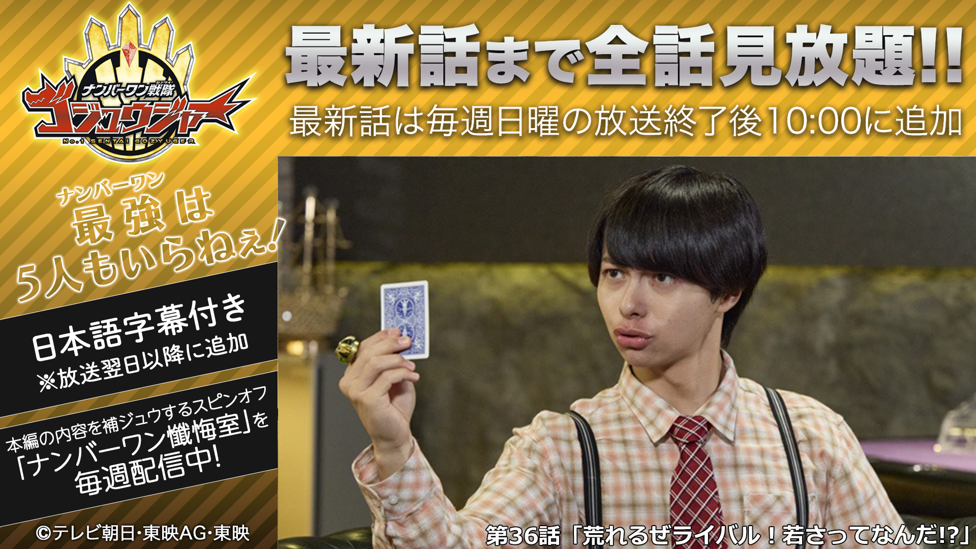 決着がつかなかった源治(島村龍乃介)との勝負以来、禽次郎(松本仁)はずっと「若さ」について考えていた。そんな禽次郎たちゴジュウジャーに、戦いで散った親友の想いを受け継いだトランプノーワンが、地獄のトランプナンバーワンバトルを仕掛けてきた! バトル会場には、なんと源治もいて…!?