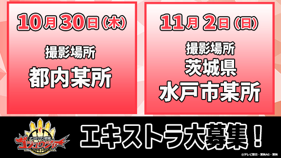 エキストラ募集 「ナンバーワン戦隊ゴジュウジャー」撮影 (東京都内 / 水戸市内 某所)