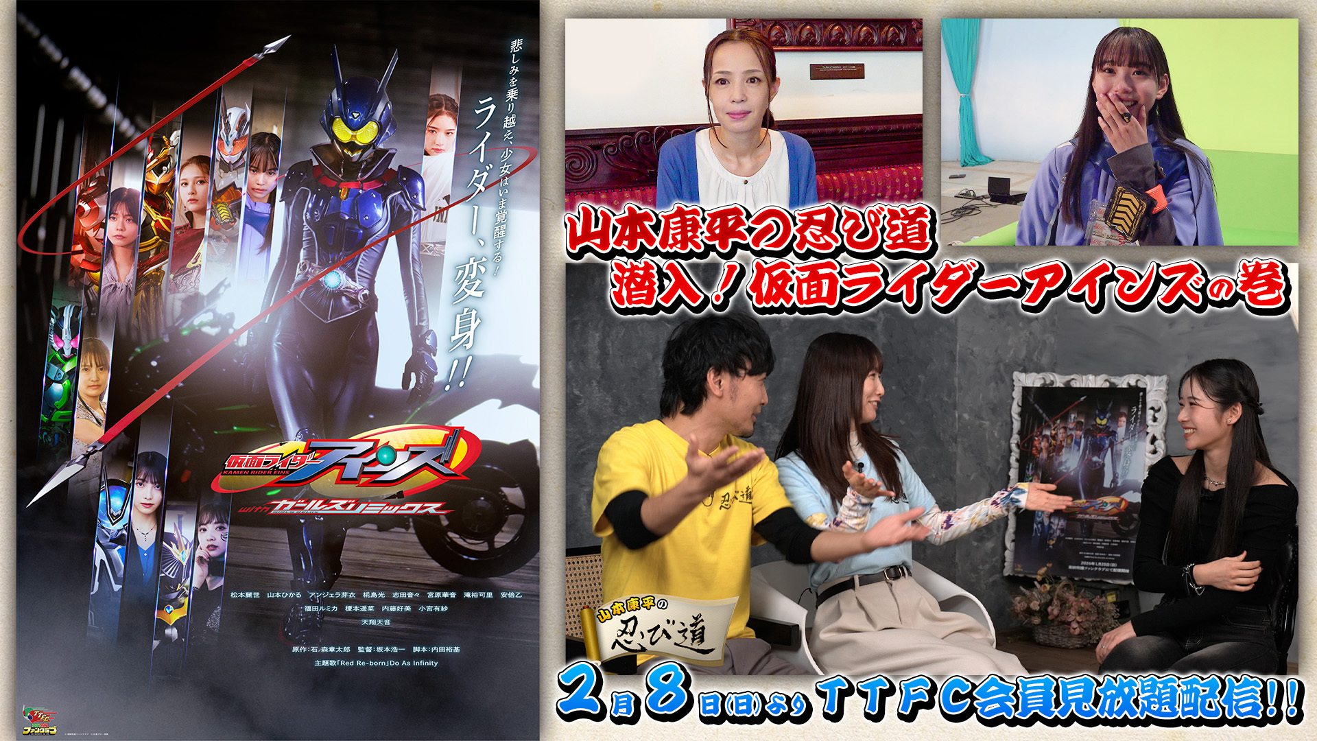 『仮面ライダーアインズ withガールズリミックス』に 『山本康平の忍び道』が忍び込む! 明日2月8日(日)10時よりTTFC会員見放題配信スタート!