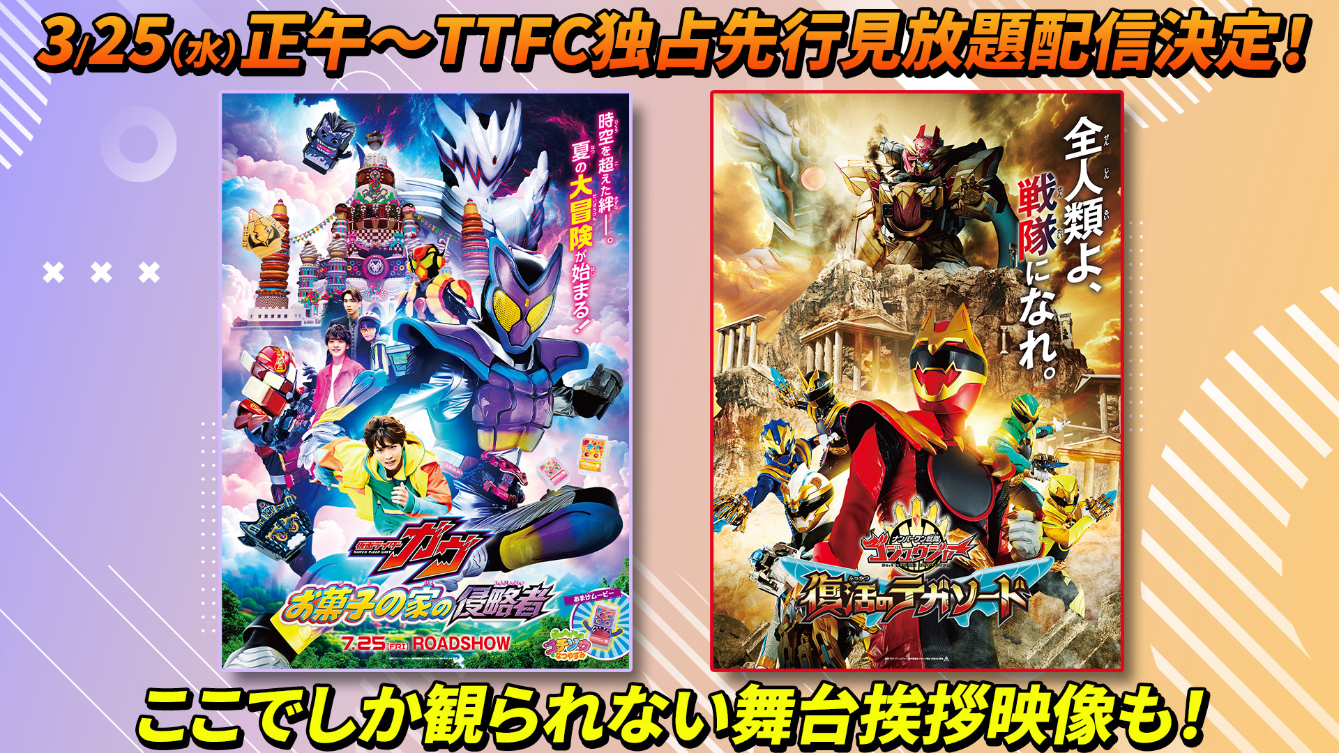 TTFC独占先行見放題配信決定!2025年劇場公開の夏映画「仮面ライダーガヴ」&「ナンバーワン戦隊ゴジュウジャー」!貴重な舞台挨拶映像も見放題に!