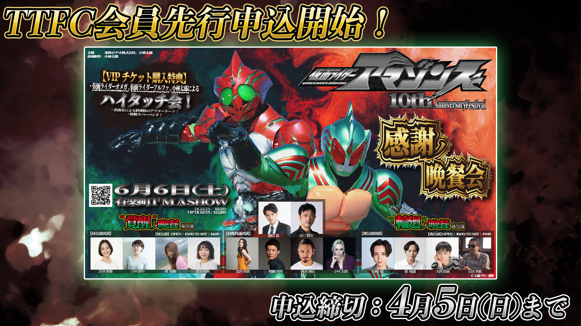 TTFC会員先行申込開始!仮面ライダーアマゾンズ 10TH Anniversary Festival「感謝ノ晩餐会」