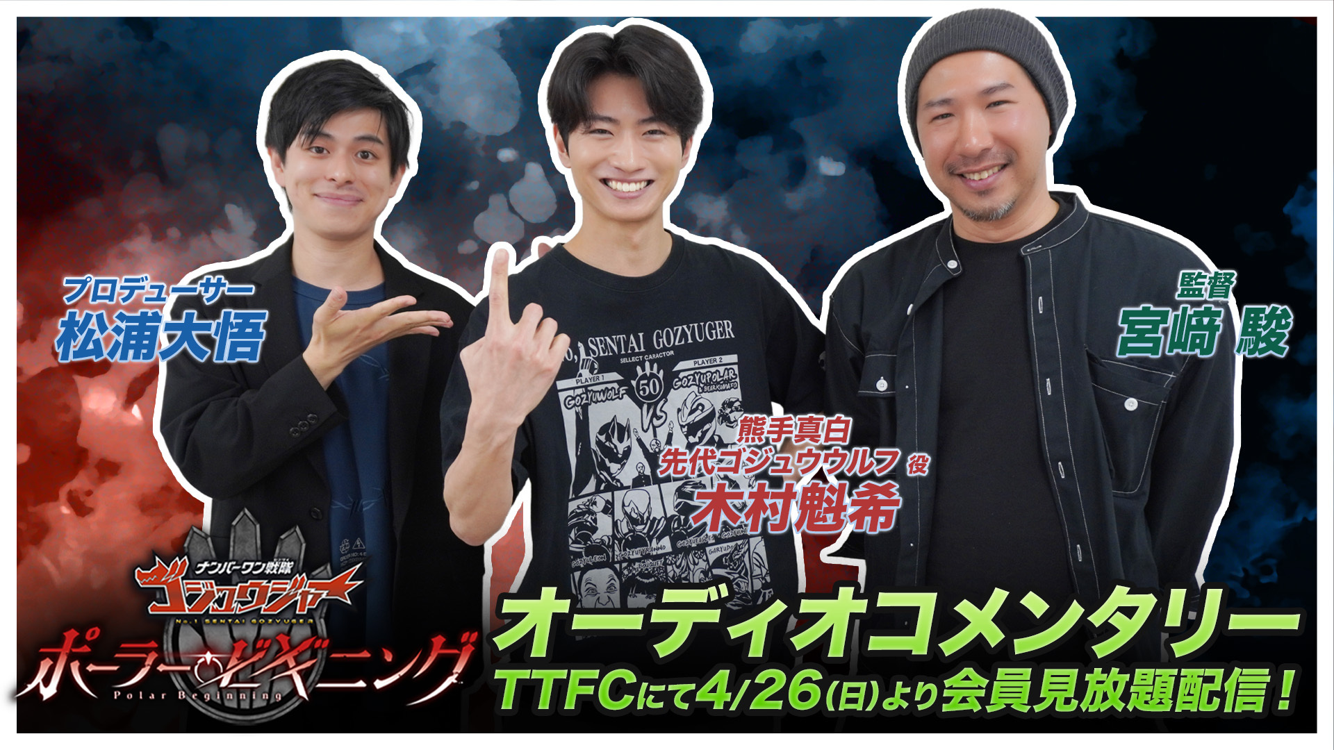 初の主演となった「熊手真白」役の【木村魁希】、『ナンバーワン戦隊ゴジュウジャー』で初のチーフプロデューサーをつとめた【松浦大悟】、そして「スーパー戦隊シリーズ」の単独作品としては、本作で初めて監督をつとめた【宮﨑駿】がオーコメに集結!