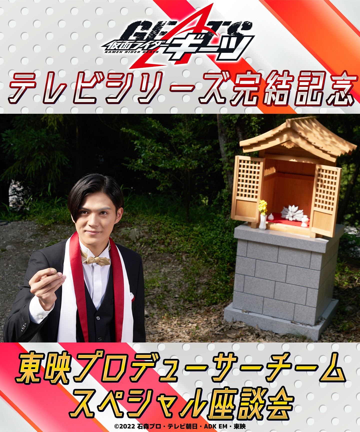 テレビシリーズ完結記念!恒例の東映プロデューサーによる“今だから話せる”スペシャル座談会を配信!数多くの新たなことに挑戦していった『仮面ライダーギーツ』を東映プロデューサー陣が振り返る! 話題は、多彩なキャラクターとそれを演じるキャストたち、多人数の仮面ライダーが登場する本作でいかに独自性を出していくか、監督の個性に合わせた脚本、結果に手ごたえを感じたというアクション、などなど…これ以外にも多岐に渡り語り尽くします。 今回は25,000字超えの長編となりました!どうぞご一読ください。 ▼目次 心境I・テレビシリーズ完結を迎えて 心境Ⅱ・キツネのように 心境Ⅲ・多彩なキャラクター 前進Ⅰ・「独自性」を出すということ 前進Ⅱ・監督たちの個性 総括Ⅰ・ライダー群像 総括Ⅱ・「二度目」とアクション 総括F:戦い続ける令和ライダー