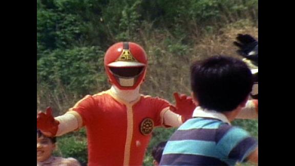 進化獣に操られる子供達。ダイナマンはマタタビで進化獣を誘き出す。